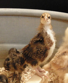 I took a chance having them shipped this time of year, and they came on a very cold day. They were sent in a small box with lots of ventilation holes and no insulation, so they were very lucky to have made the trip alive (and now after reading horror stories of chicks dying of cold in transit, I would not do it again). But they did make it, and they were screaming their heads off in the post office when I went to pick them up!